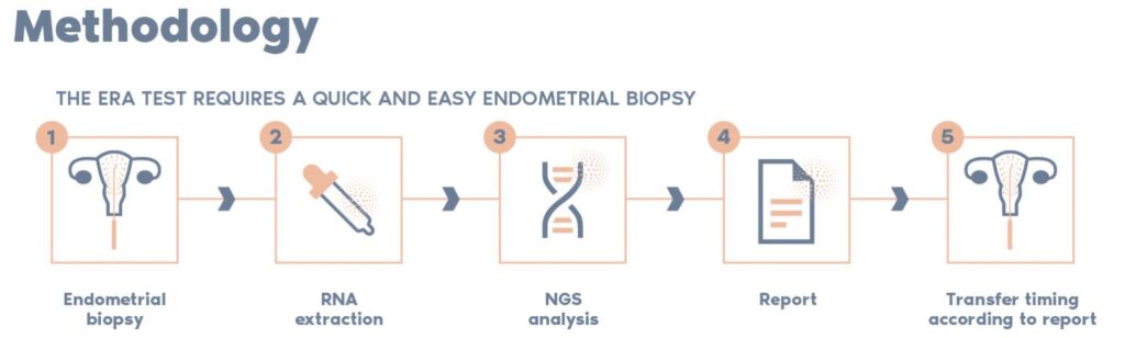 移植周期と同様に内膜を育て、着床の準備が整う受容期に、ずれがないか着床の窓を特定するための遺伝子検査(ERA検査)を行います。