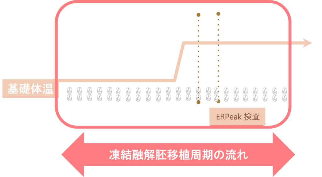移植周期と同様に内膜を育て、 着床の準備が整う受容期に、ずれがないか着床の窓を特定するための遺伝子検査(ERPeak℠検査)を行います。