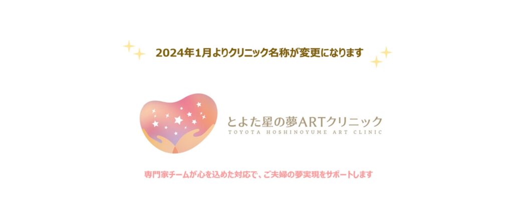 この度、2024年1月をもちまして、クリニック名称を「とよた星の夢ARTクリニック」に